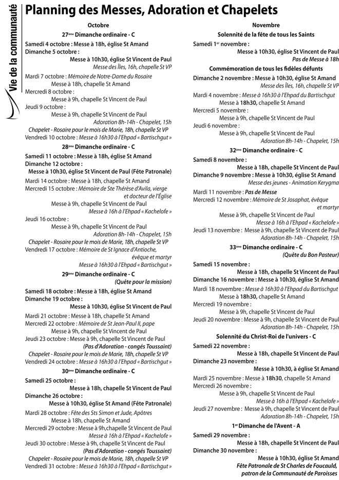Dimanche 26 octobre à 10h30 : Messe à Saint Amand